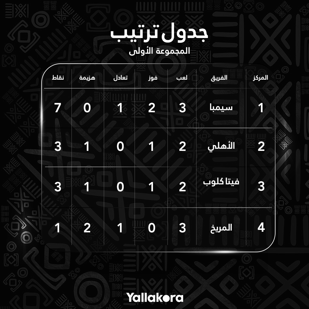 ترتيب مجموعة الأهلي في دوري أبطال إفريقيا بعد التعادل مع المريخ السوداني.